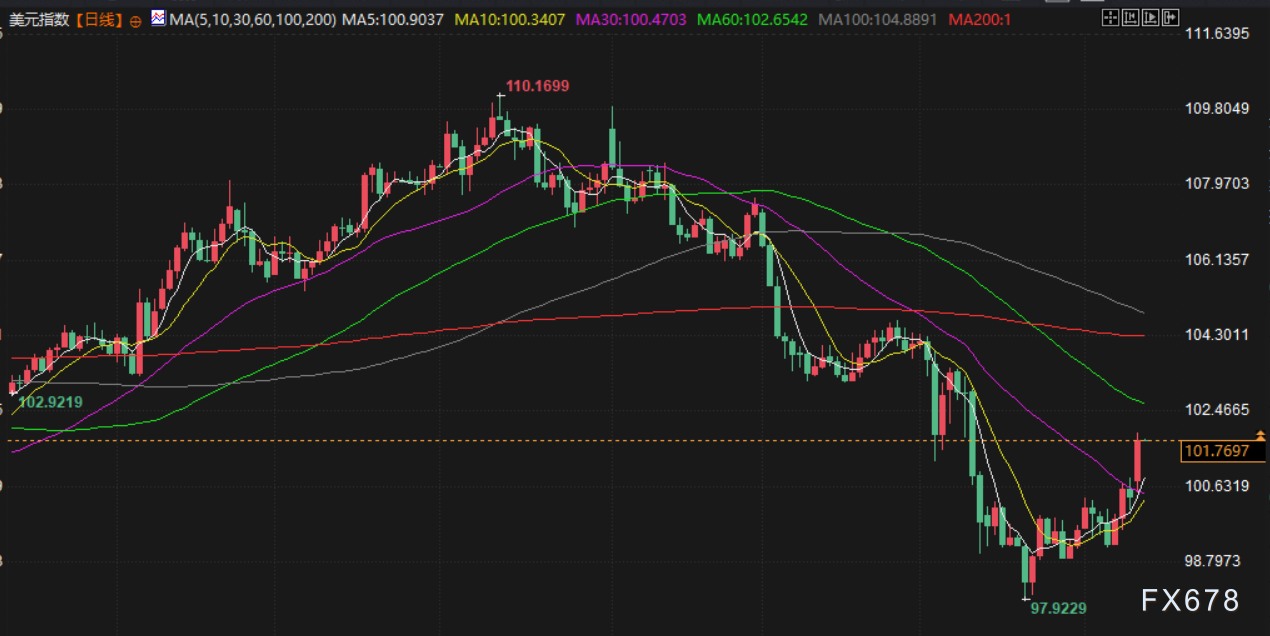 汇通财经APP讯——周一(5月12日),美元指数以稀有的强劲姿势沉返101。60关口,打破了此前数周的盘整态势。这一波涨势源于中美颁布发表告竣为期90天的商业缓和和谈,两边大幅下调彼此关税,市场对此反映强。。。